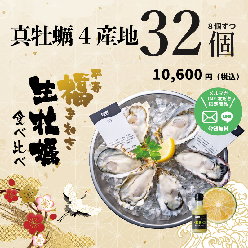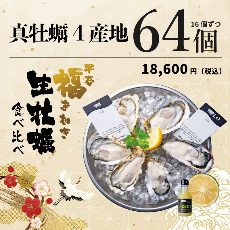 1月から2月にかけて、真牡蠣は旬のピークを迎えます。「身が太る」「滋養に満ちる」ことから、牡蠣は古くより縁起物として親しまれてきました。その旬真っ盛りの牡蠣を日本全国から厳選し、4産地の味わいを一度に楽しめる、早春限定『福まねき食べ比べセット』をご用意しました。