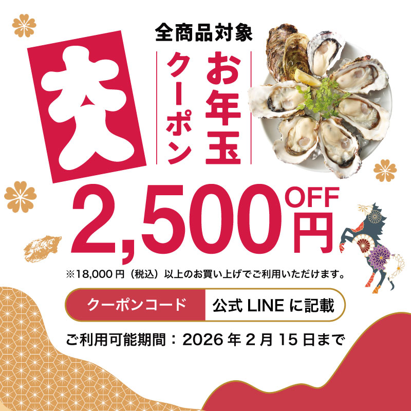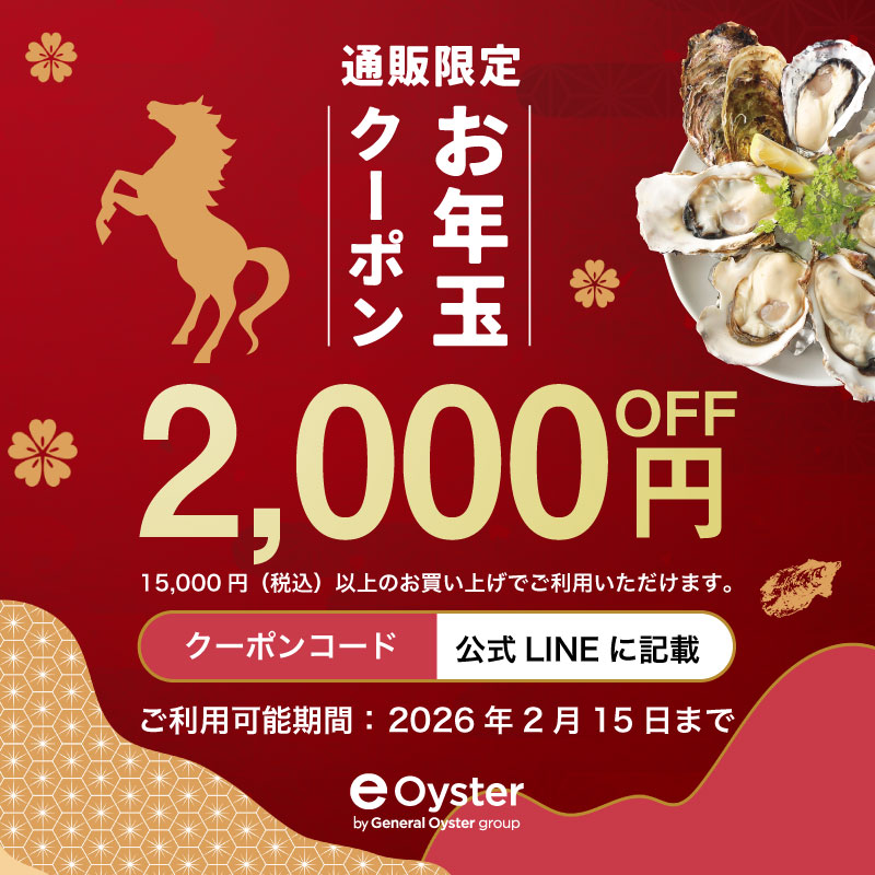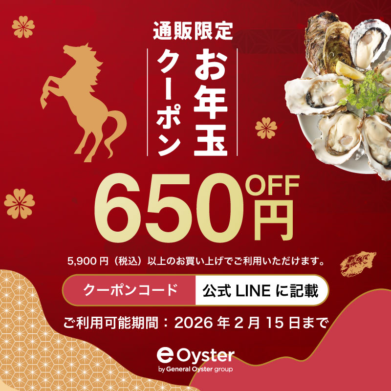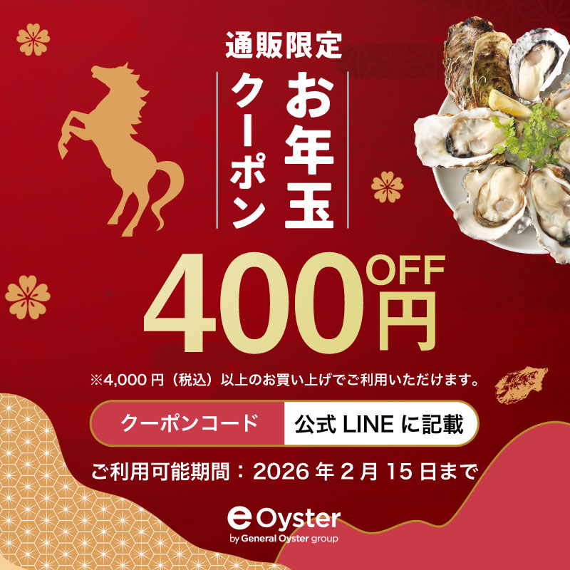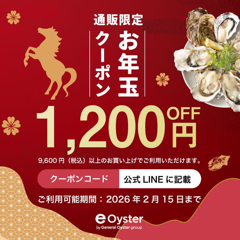 今年もやります!「e-oyster」から「お年玉クーポン」をプレゼント!どなたでもご利用いただける最大2,500円OFFクーポンを、今年は6種類ご用意しました!