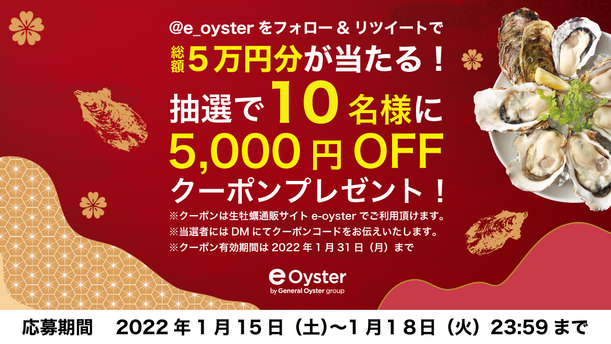 2022年1月15日(土)より、Twitterアカウント(@e_oyster)において、フォロー&リツイートキャンペーンを開催いたします!